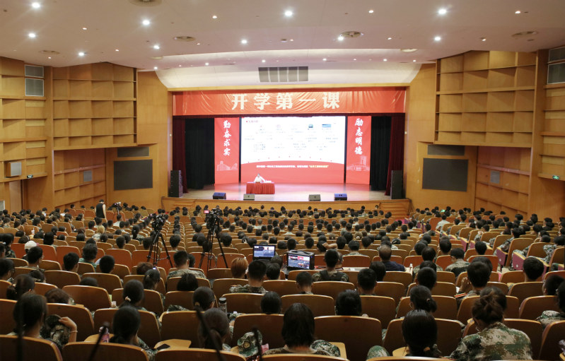 相关职能部处负责人、学院领导、军训团教官共同聆听了开学第一课。